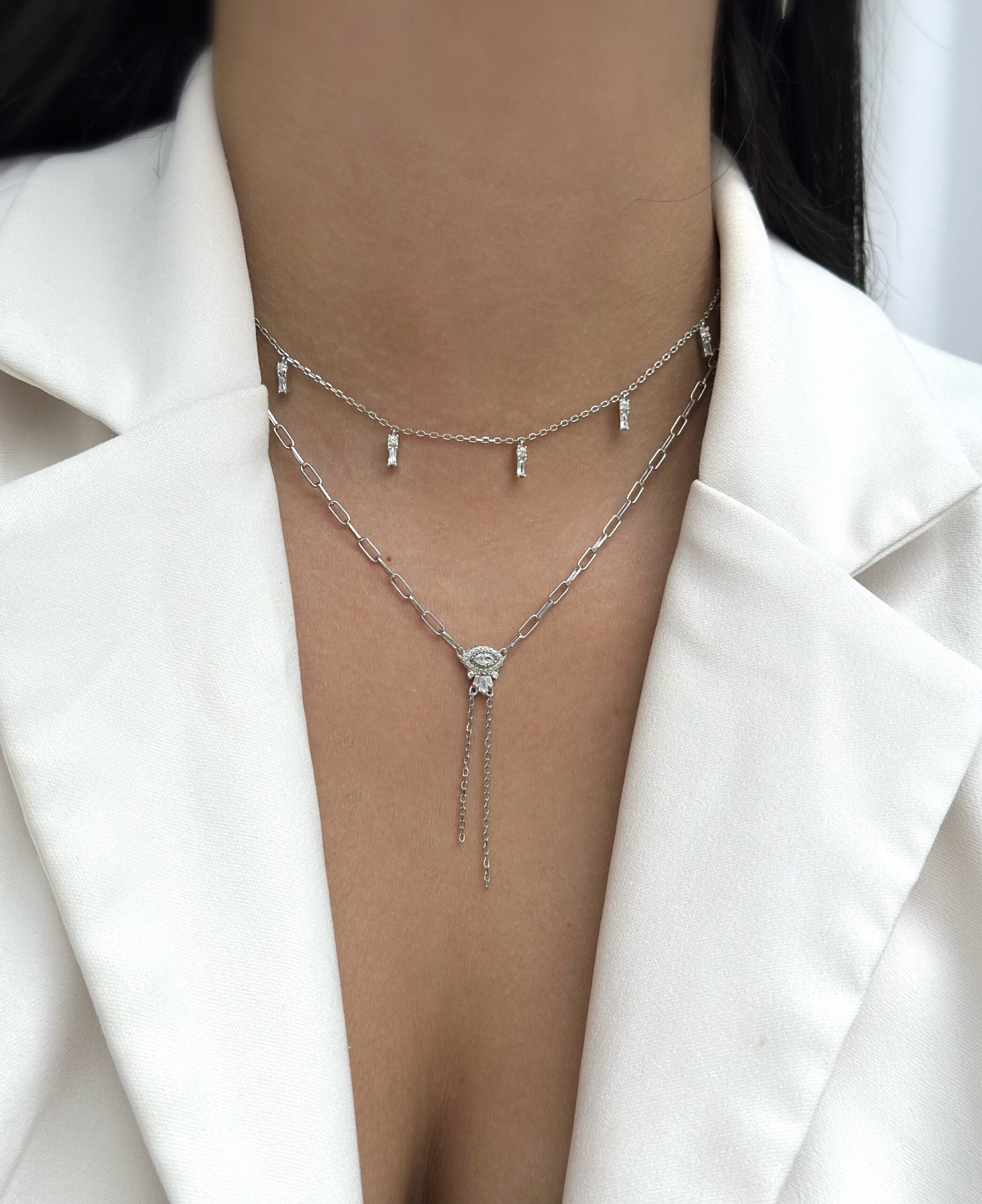 שרשרת "קיילה" מציגה עיצוב יוקרתי ומתוחכם שמתאים לכל אירוע. השילוב של כסף אמיתי 925 עם אבני זרקון נוצצות מעניק לשרשרת מראה נוצץ ותחכום שאין לו תחליף.